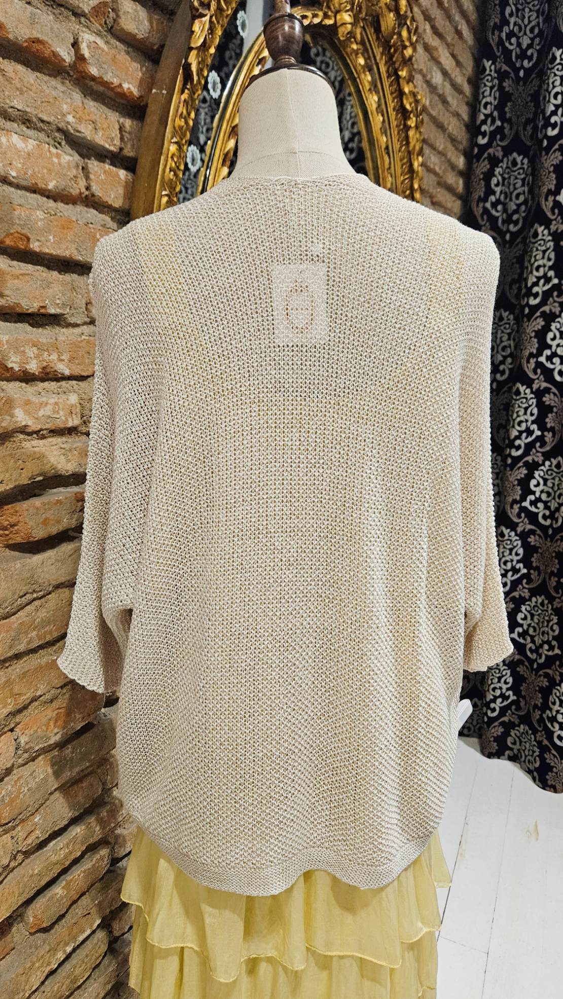 Chaqueta de punto con un toque de brillo en lúrex, manga rangla por debajo del codo.