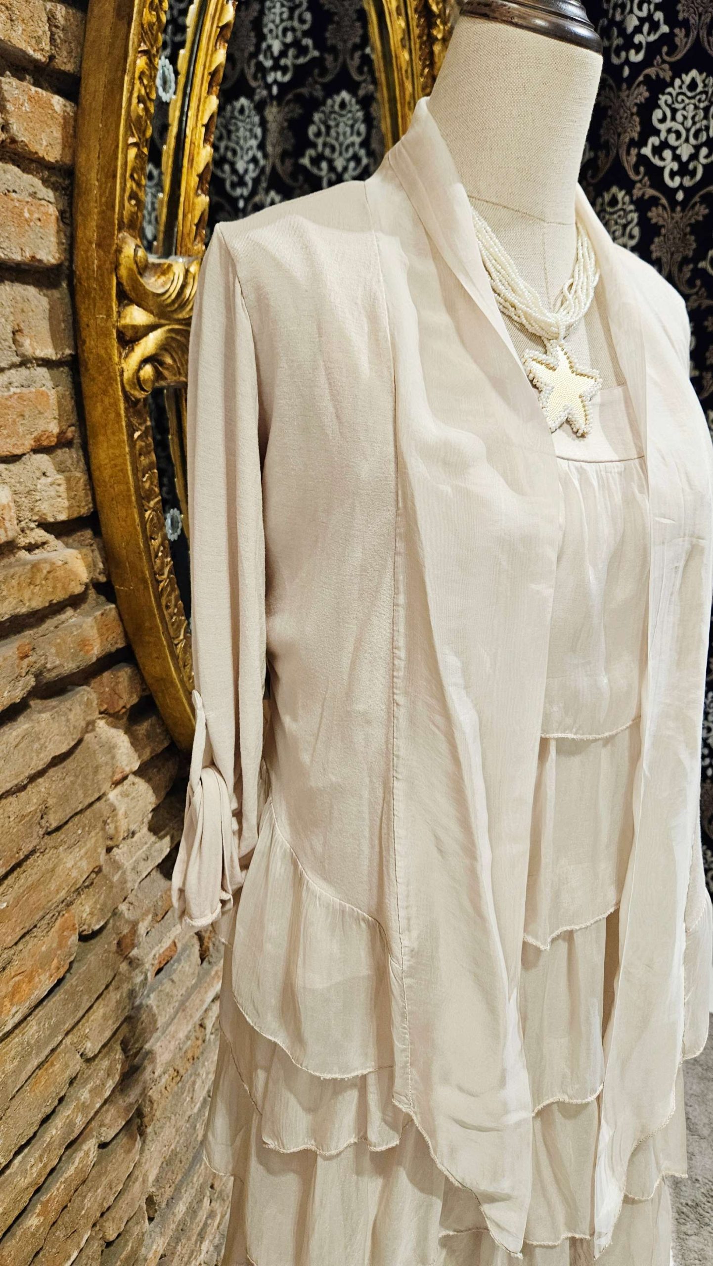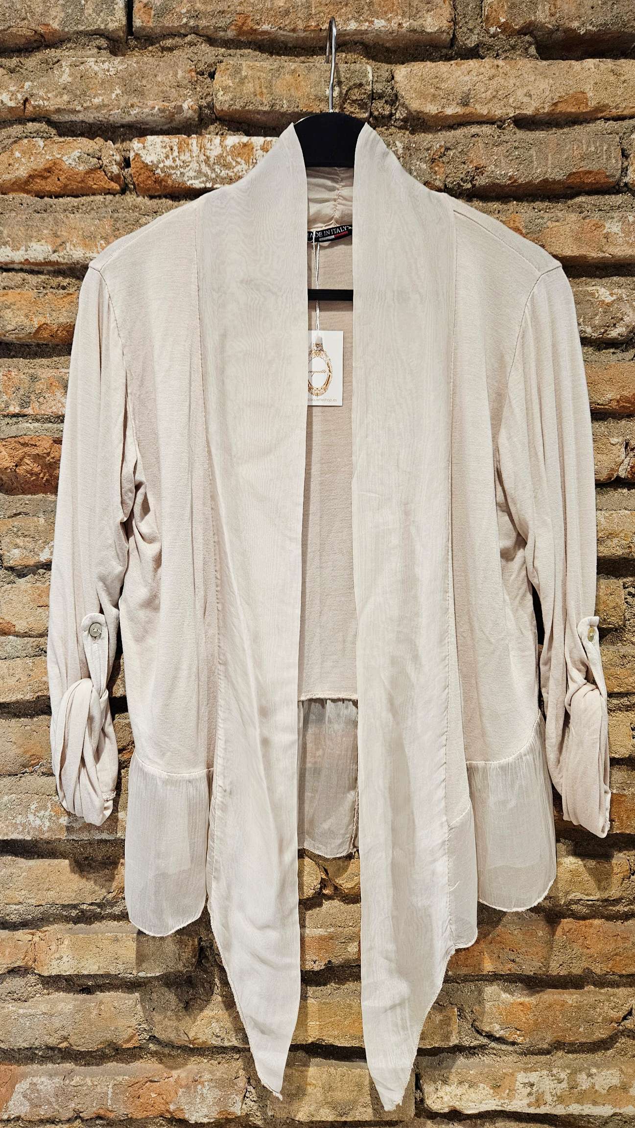 Chaqueta corta de seda italiana en color liso. Es una prenda cómoda y ligera. Manga larga con trabilla para recoger la manga. Puedes combinarla con cualquier prenda de seda que puedes encontrar en nuestra página.