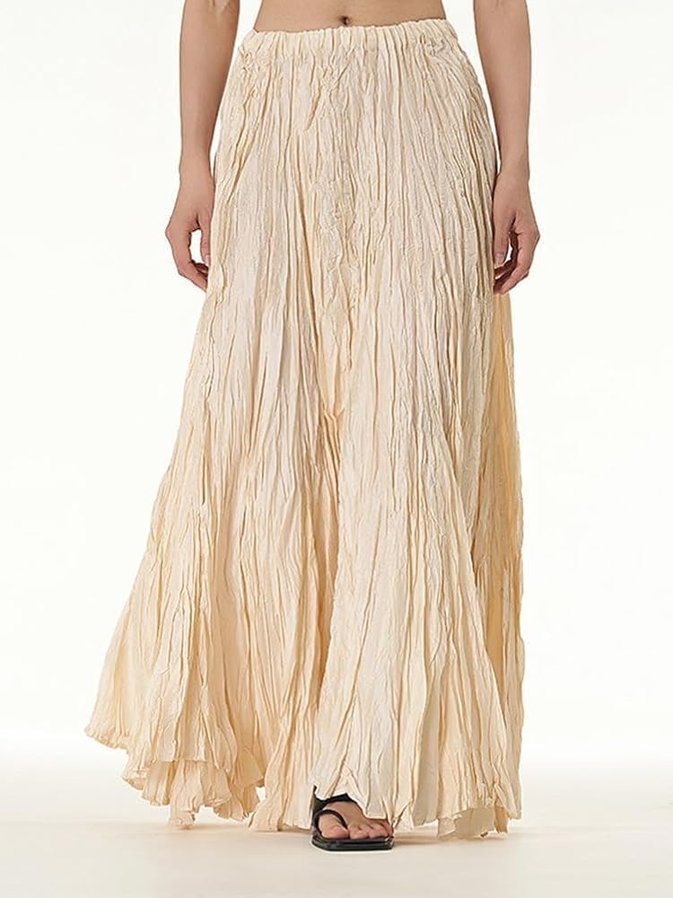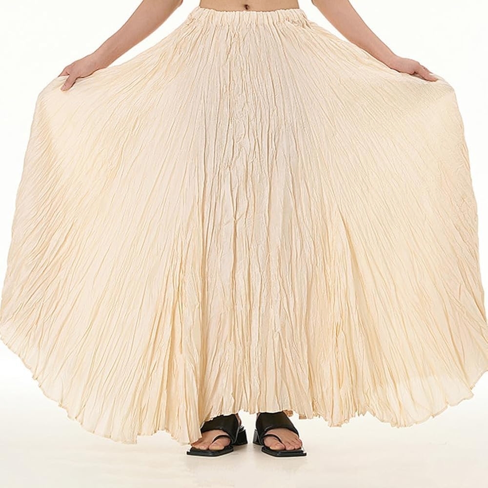 Falda plisada con cintura elástica, de largo hasta el tobillo. Tejido suave, ligera y transpirable, muy versátil de combinar.