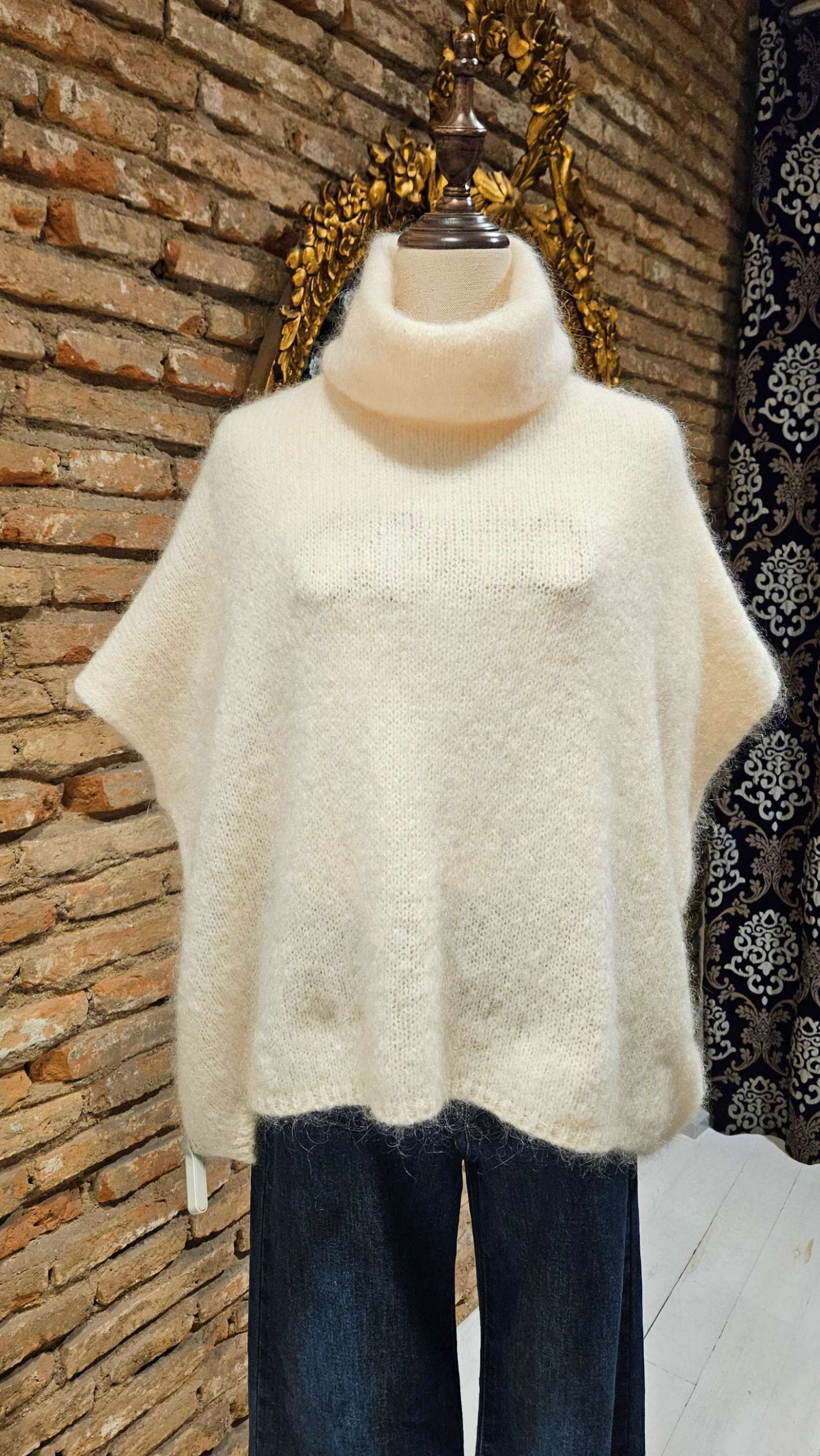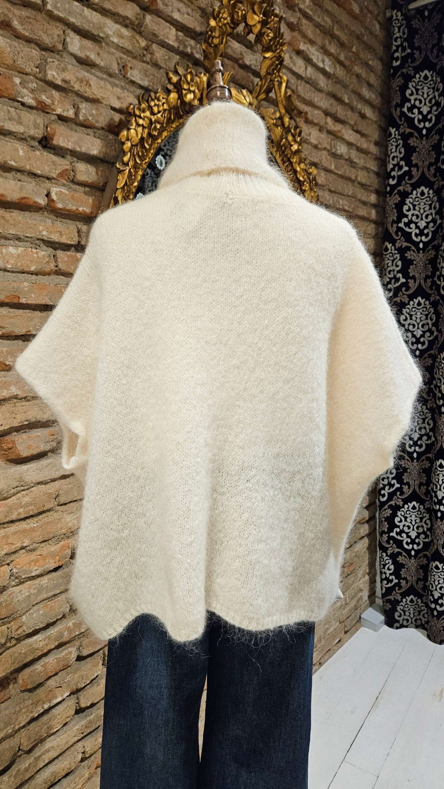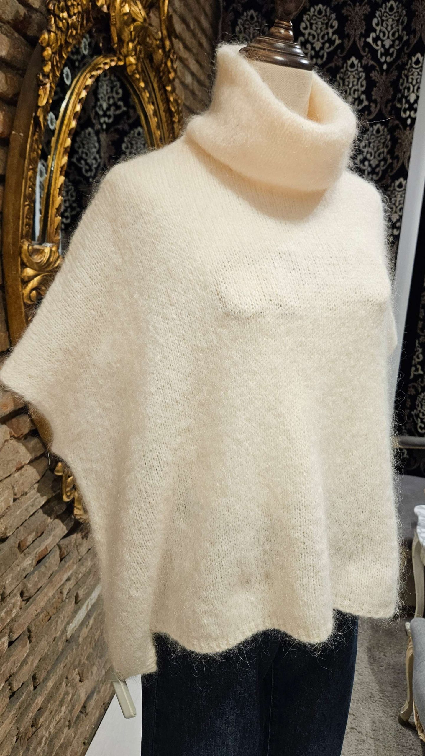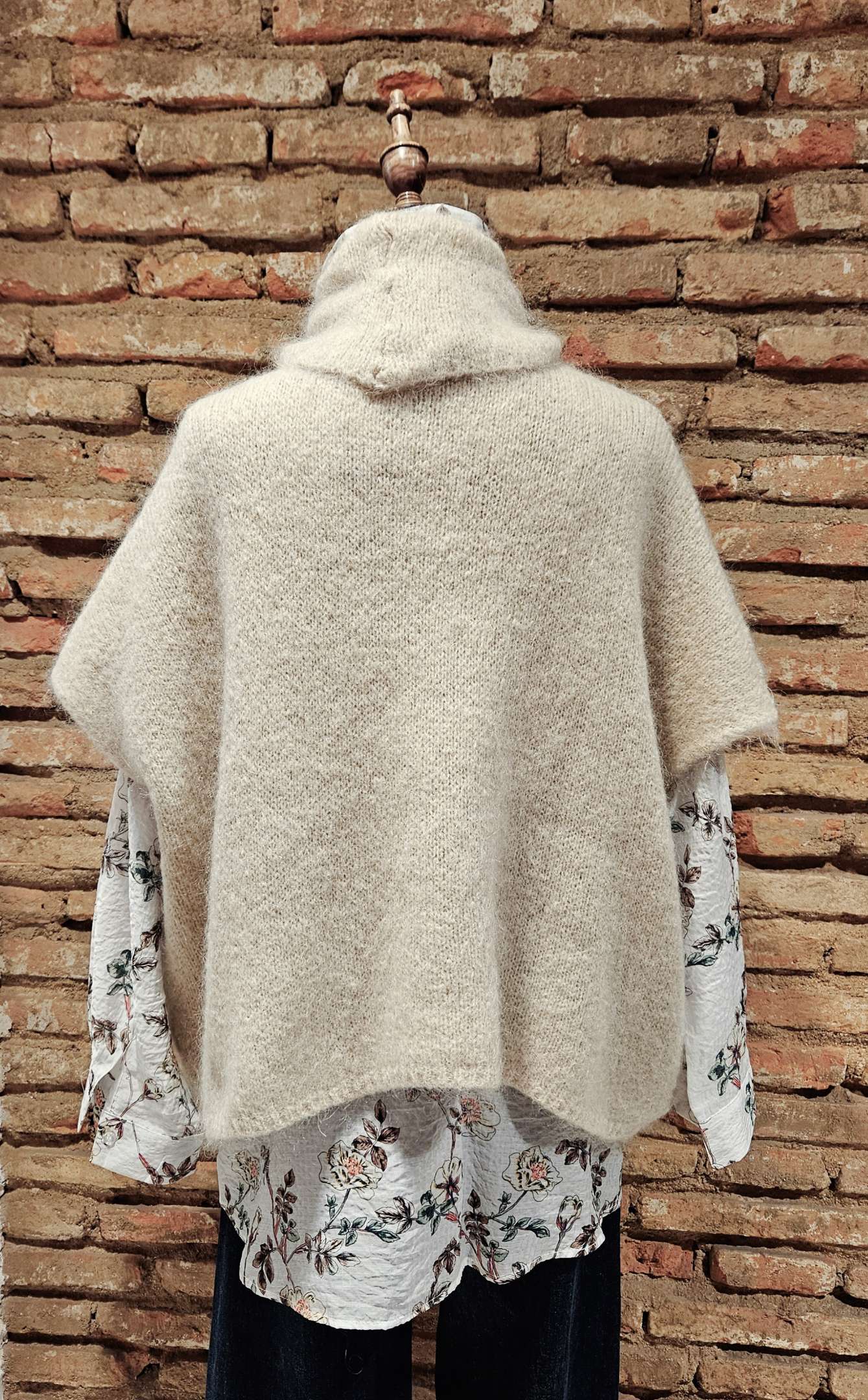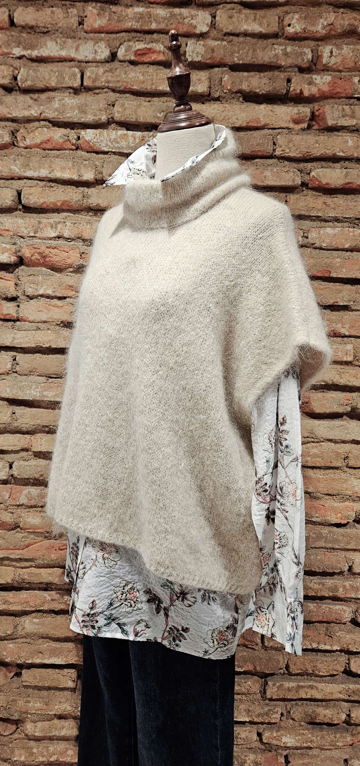 Jersey de cuello alto estilo poncho sin mangas en kid mohair que combina elegancia y comodidad. Ideal para combinar con camisa o un vestido, o para llevarlo solo para un estilo minimalista y sofisticado.