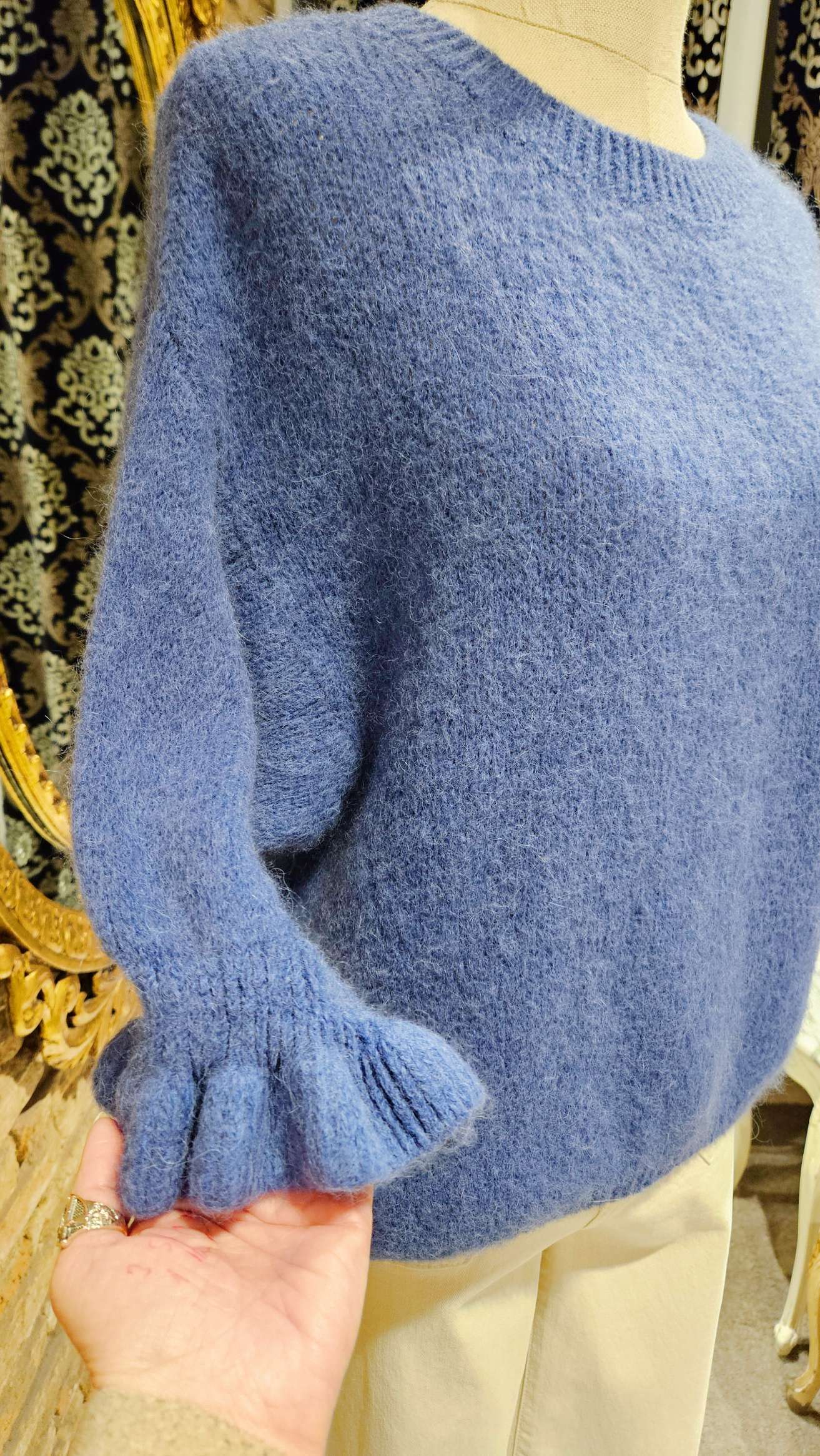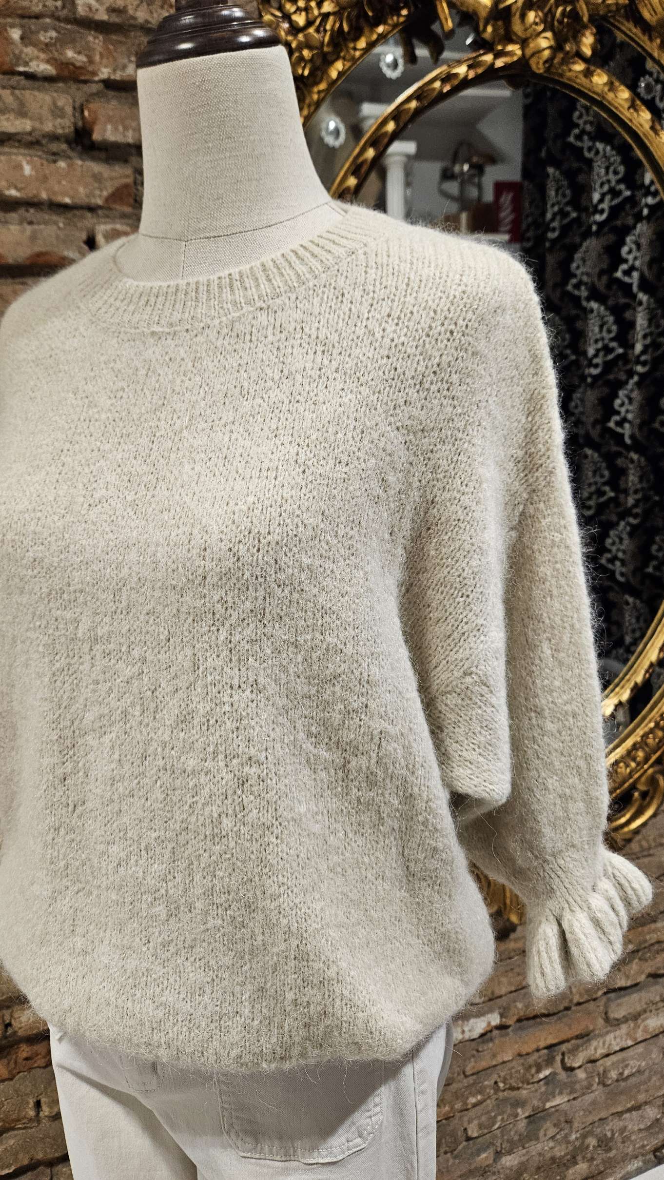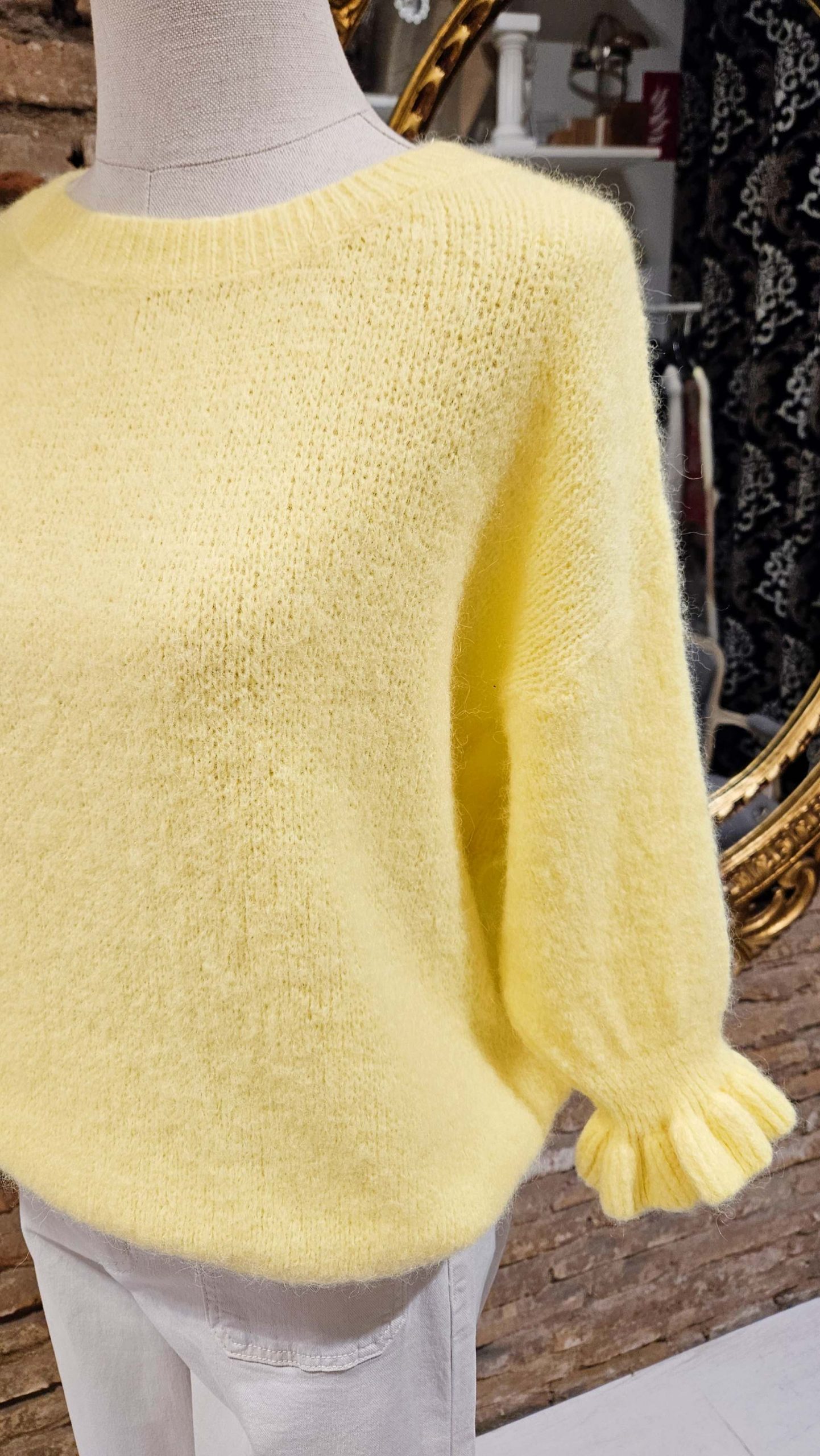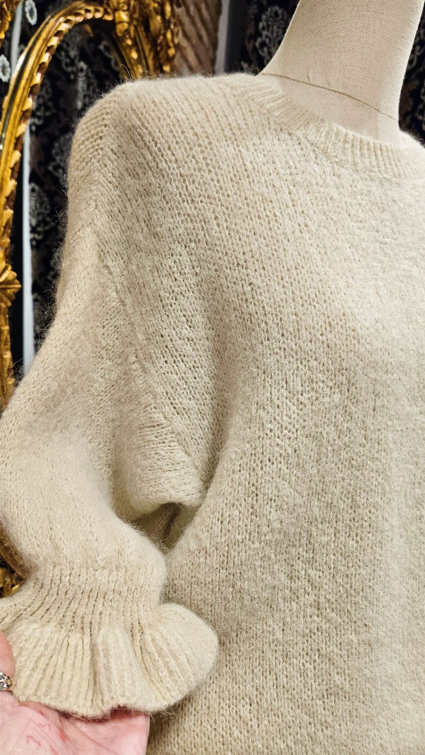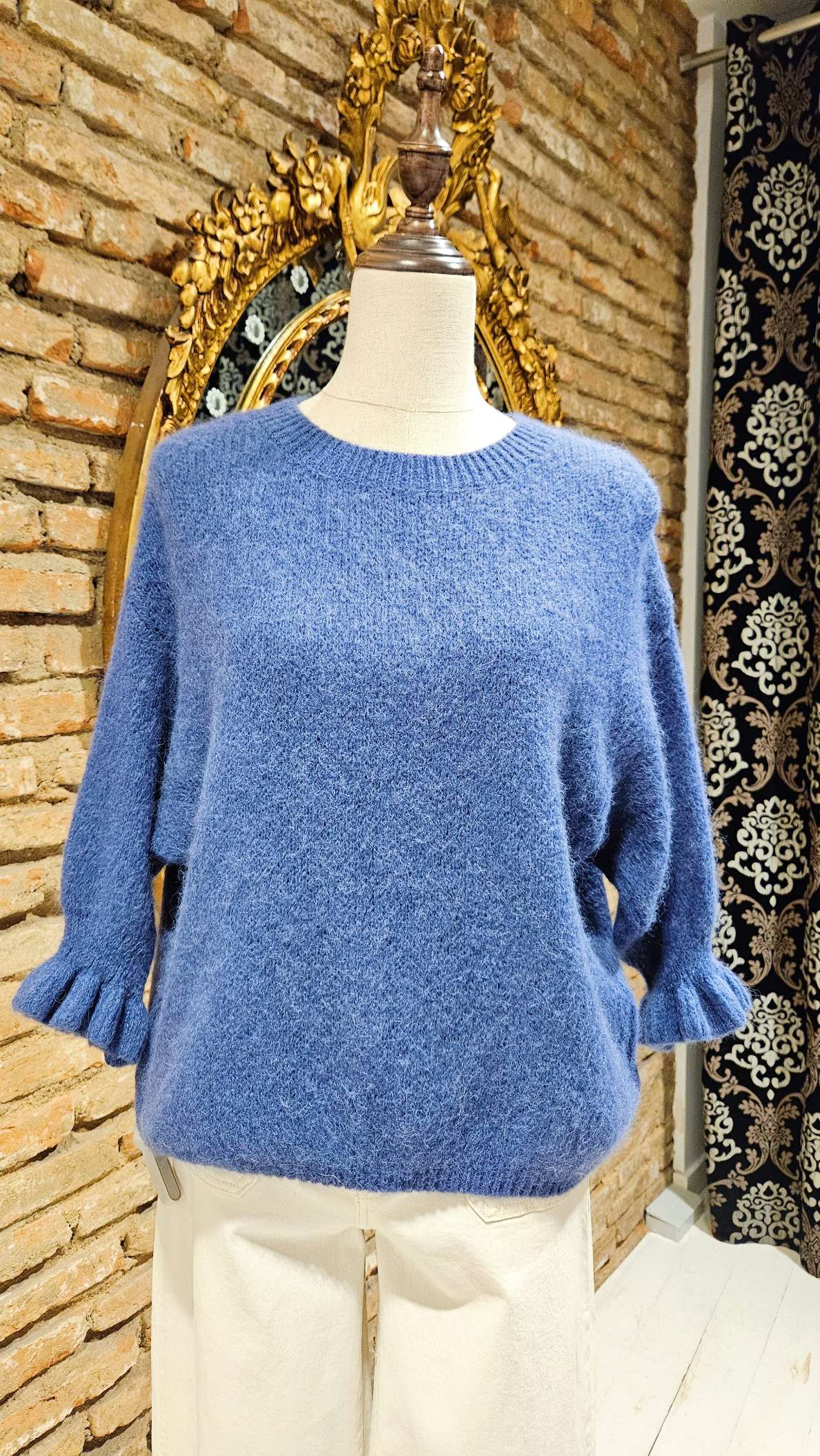 Jersey de punto con cuello redondo, diseño holgado y manga francesa con el detalle del puño rizado.