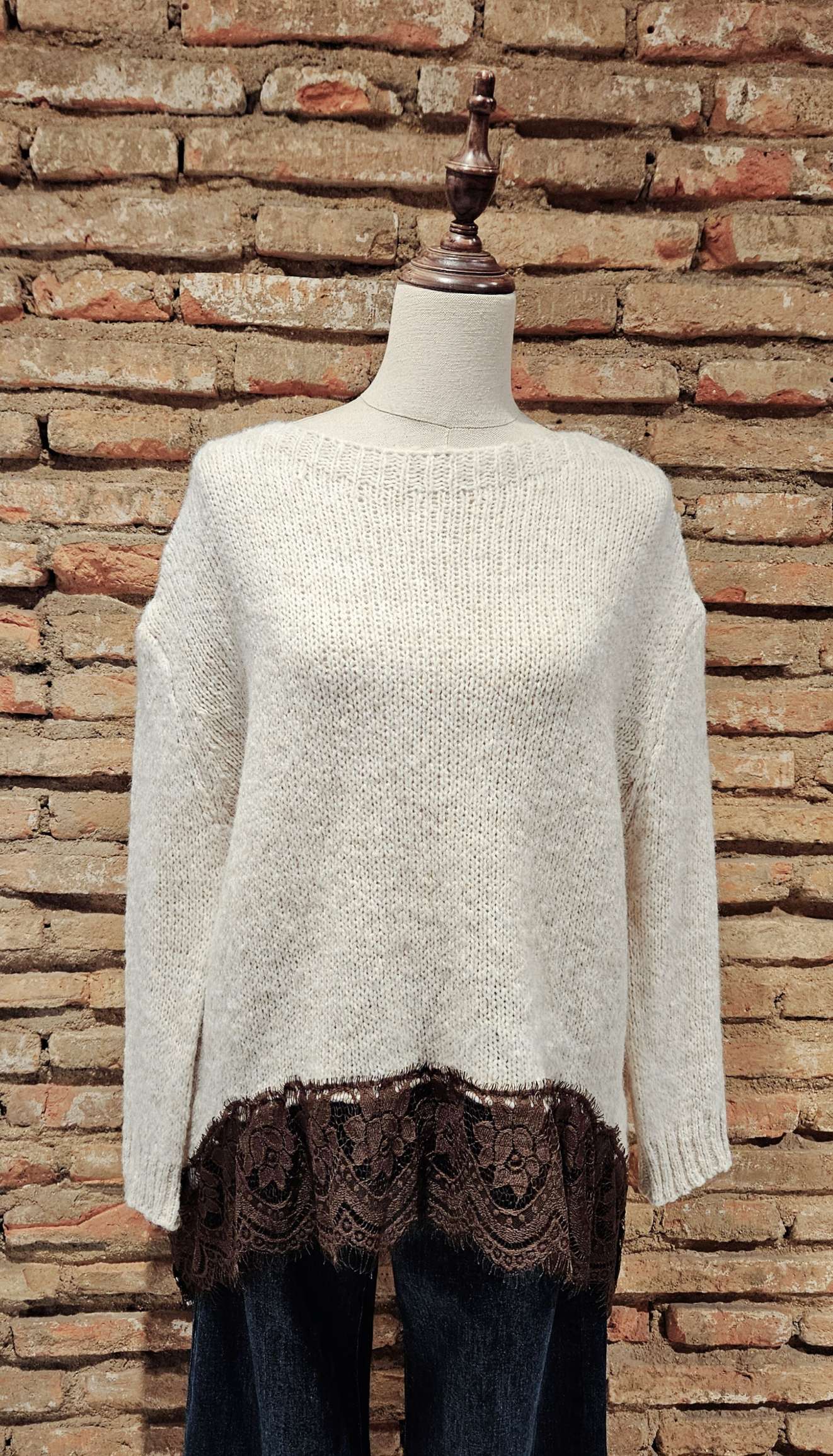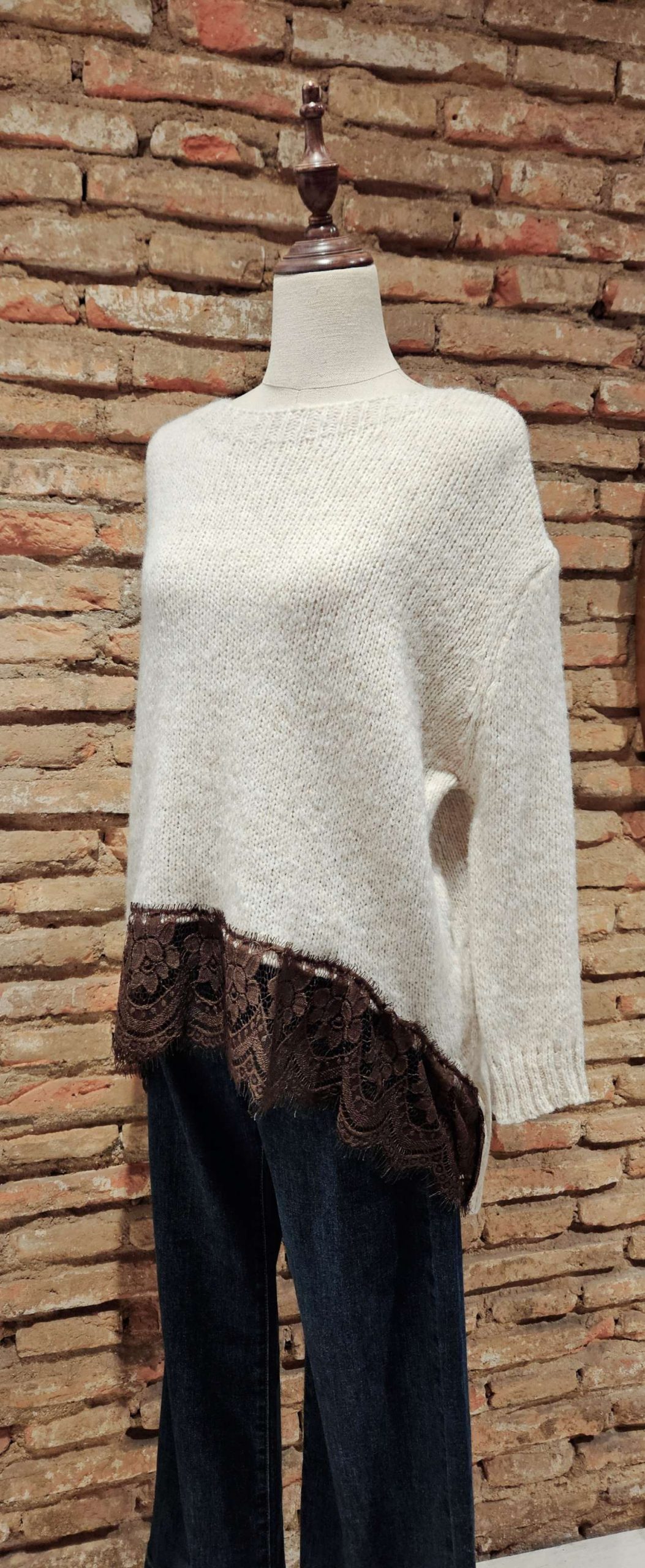 Jersey de punto, desestructurado, con detalle de puntilla.