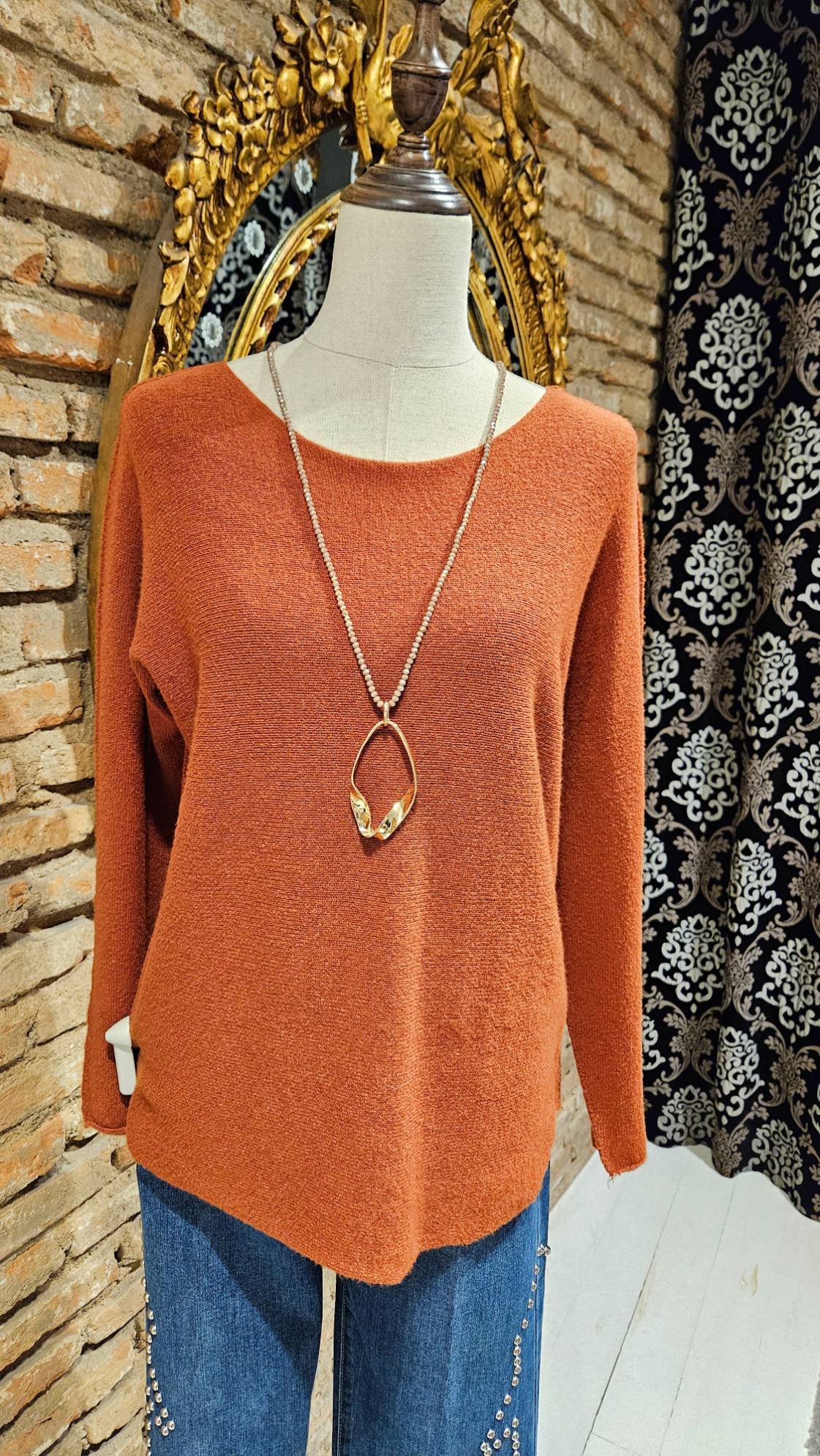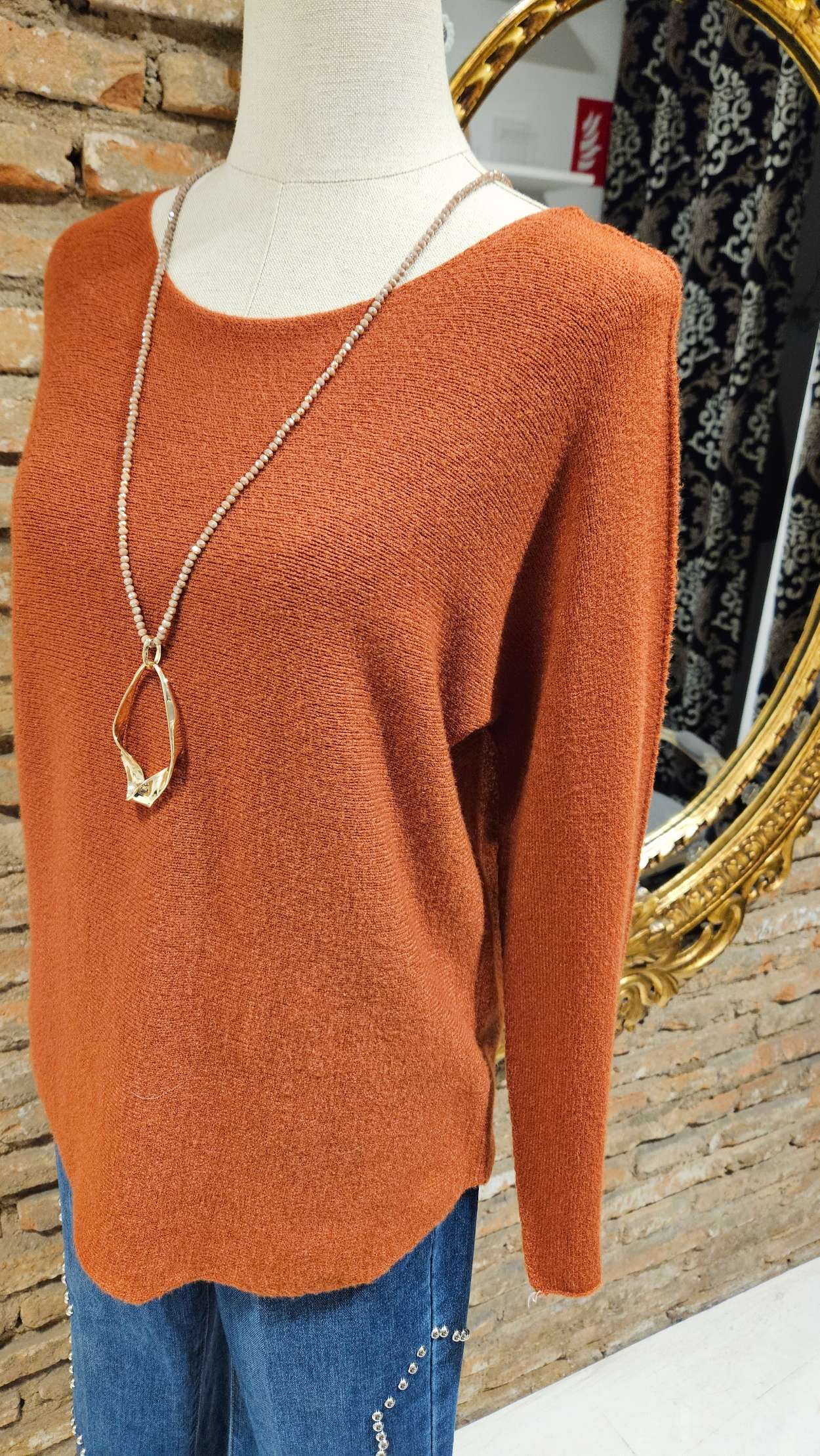 Jersey de punto de color de manga larga de corte holgado y con escote redondo simple y casual. Es una prenda muy versátil ideal para looks casuales de dia o de noche.
