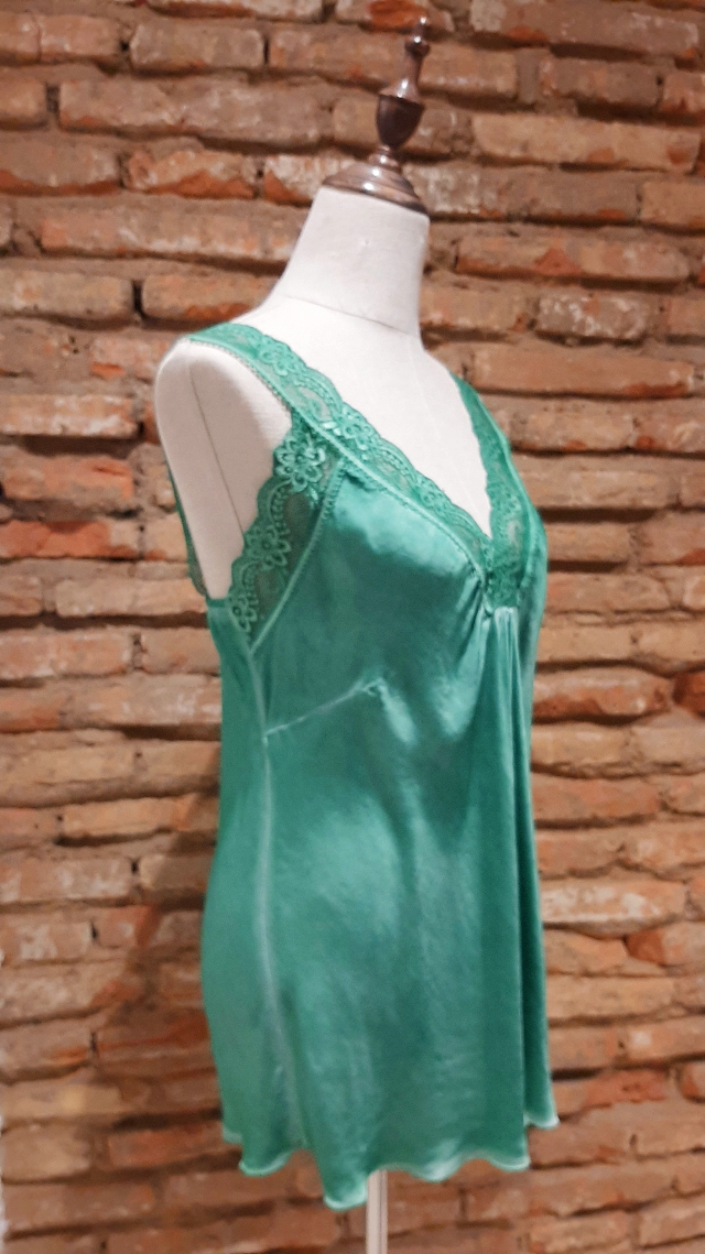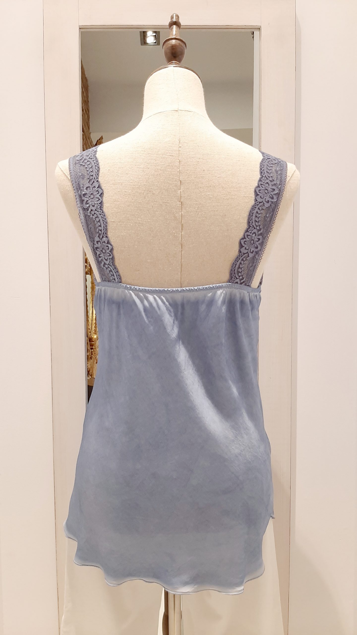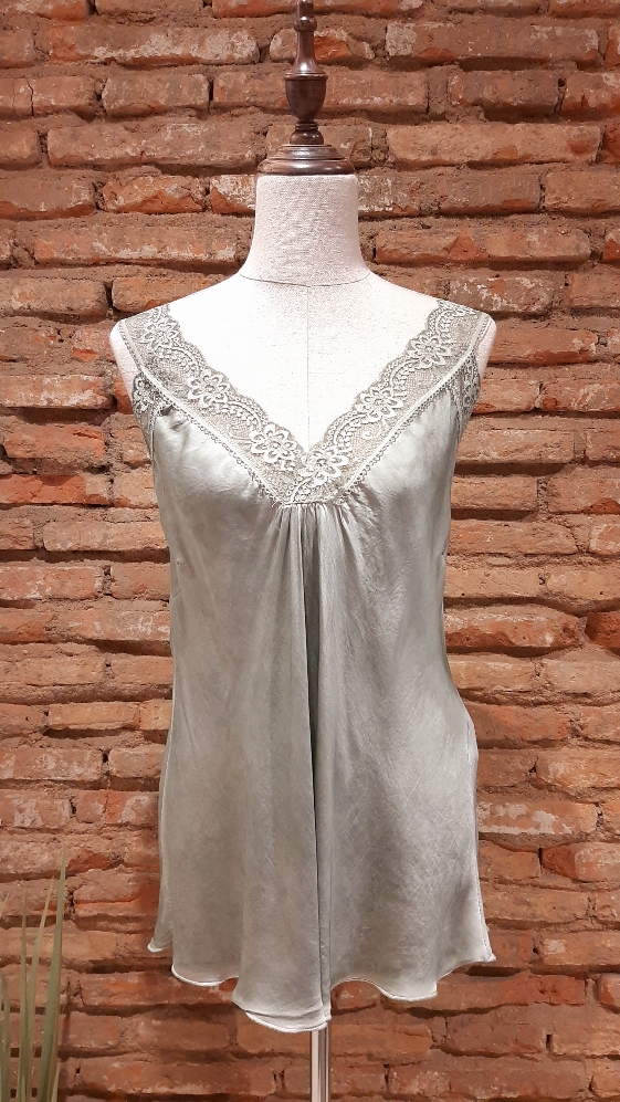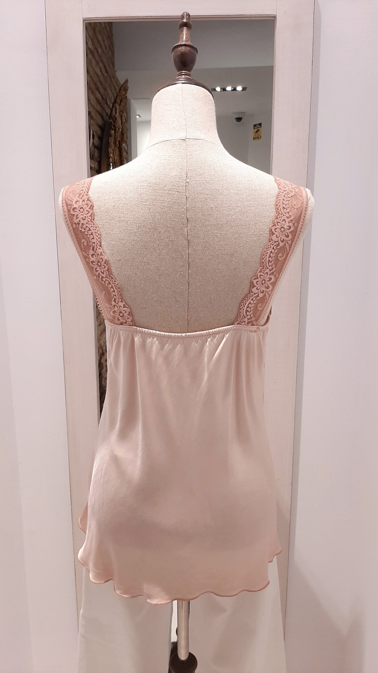 Top lencero cortado al bies con tirantes de encaje. Goma ajustable en la espalda.